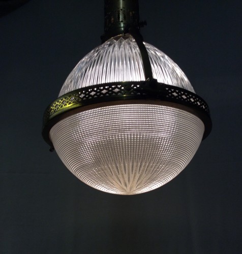 Old suspension lamp. Old suspension lamp made by Holophane. Marked « Holophane ». Height 70 cms. Diameter 36 cms. Add this object to your favorites Contact us for more details