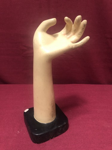 Hand display stand Hand painted plaster display. Used to present a scarf, a piece of fabric or a necklace or other. Small accidents visible in the photos.Period early 20th century. Dimensions of the base: 14 X 14 cm. Height: 37cm. Add this object to your favorites Contact us for more details